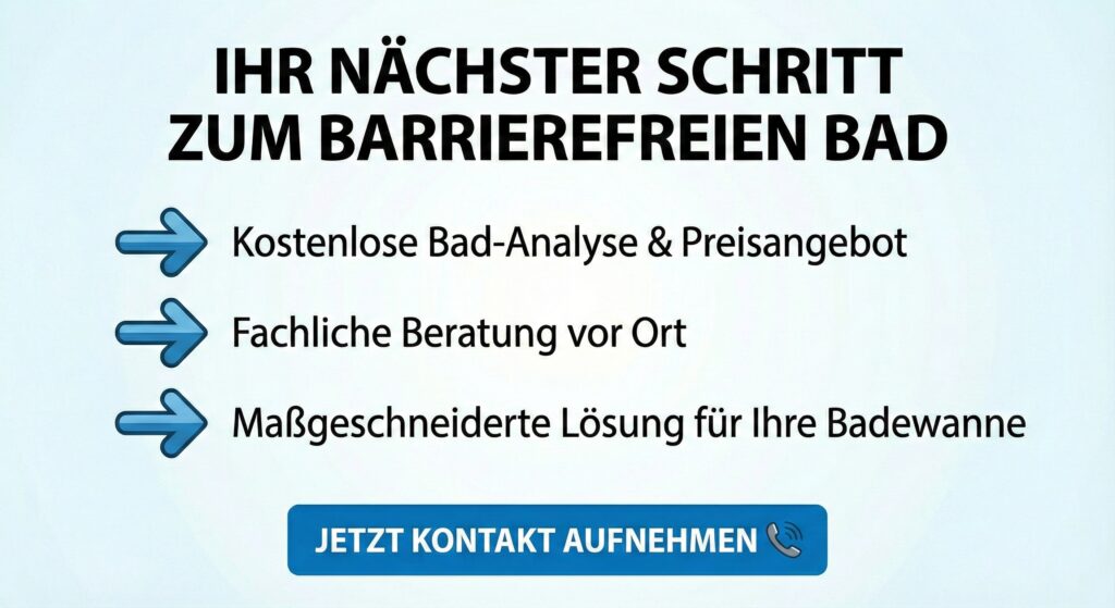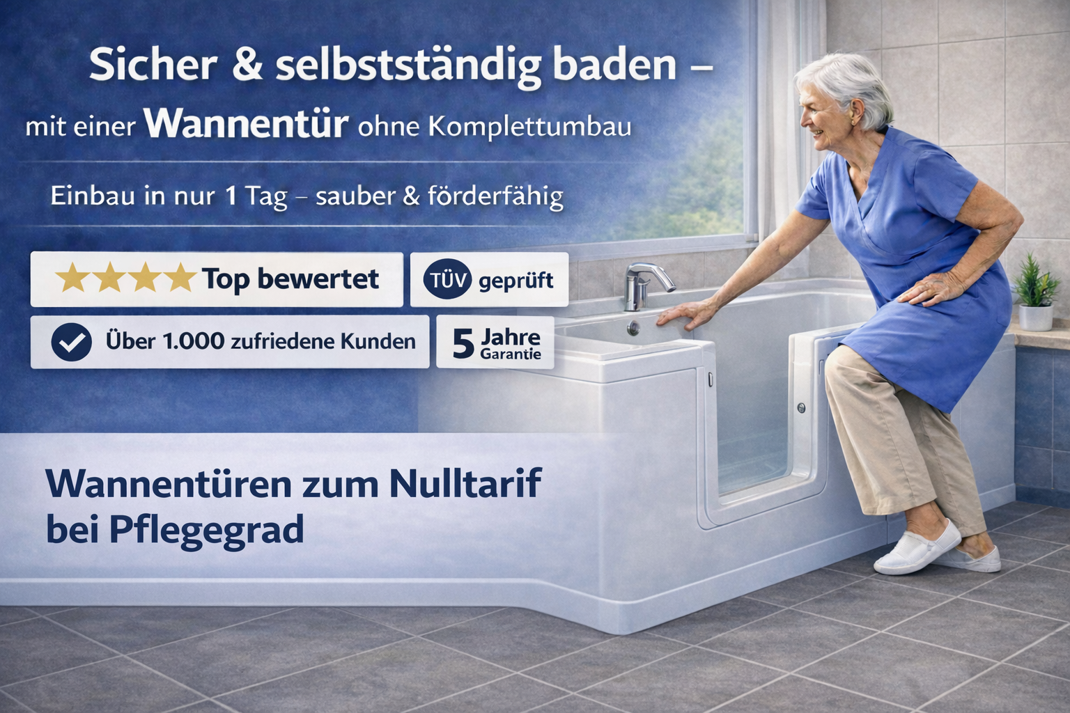 Stellen Sie sich vor: Sie steigen bequem und sicher in Ihre Badewanne ein, ohne über einen hohen Wannenrand klettern zu müssen – ganz ohne großen Umbau oder Schmutz im Bad. Mit einer nachträglich eingebauten Badewannentür wird genau das möglich: Ihre vorhandene Badewanne wird in wenigen Stunden zu einem barrierearmen, leicht zugänglichen Badgerät, das sowohl für ältere Menschen als auch für alle, die sich mehr Komfort im Bad wünschen, ideal ist.